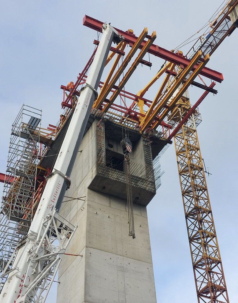 Gradnja viadukta Vinjan na projektu drugega železniškega tira med Divačo in Koprom. Naročnik: 2TDK. Izvajalec: Kolektor.